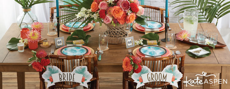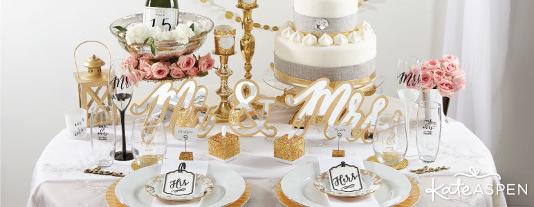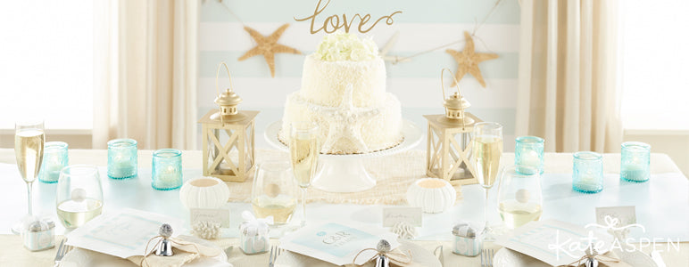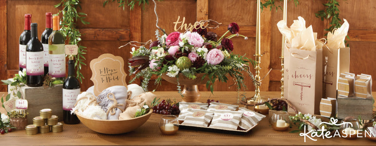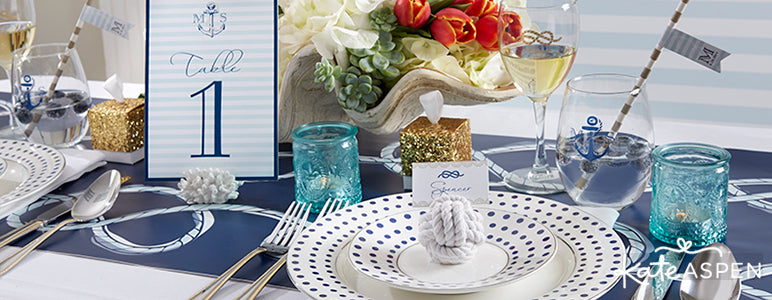A wedding party isn't complete without the details of a Kate Aspen collection. With favors and decorations, you and your guests will delight in these products crafted perfectly for your special day. Some themes include nautical, Indian Jewel, and classical motifs with special decorations for each line. We offer a range of décor from banners and signs, to decorations for your dessert table and special wedding favors for your special guests. Choose flowery accents and fine personalized glassware to make your wedding unique. Personalized details are available for decorations, glassware and favors to remember the big day. Wine tags and bottle stoppers can be used during the special ceremony.