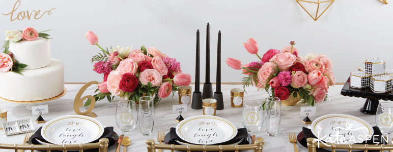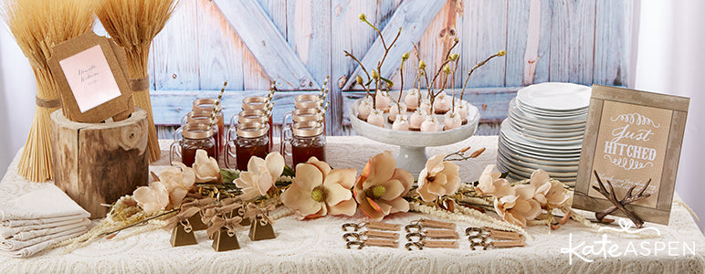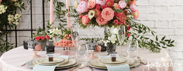 A wedding party isn't complete without the details of a Kate Aspen collection. With favors and decorations, you and your guests will delight in these products crafted perfectly for your special day. Some themes include nautical, Indian Jewel, and classical motifs with special decorations for each line. We offer a range of décor from banners and signs, to decorations for your dessert table and special wedding favors for your special guests. Choose flowery accents and fine personalized glassware to make your wedding unique. Personalized details are available for decorations, glassware and favors to remember the big day. Wine tags and bottle stoppers can be used during the special ceremony.